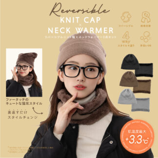 リバーシブルニット帽×ネックウォーマー2点セット