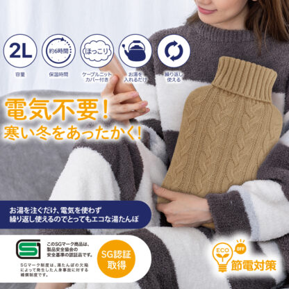 お湯を注ぐだけ、電気を使わず繰り返し使えるのでとってもエコな湯たんぽ