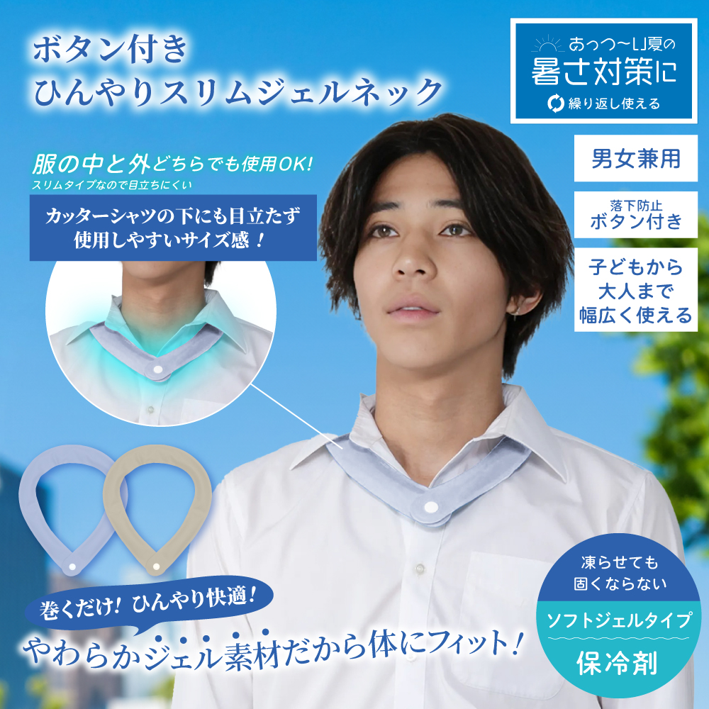 ボタン付きスリムジェルネック