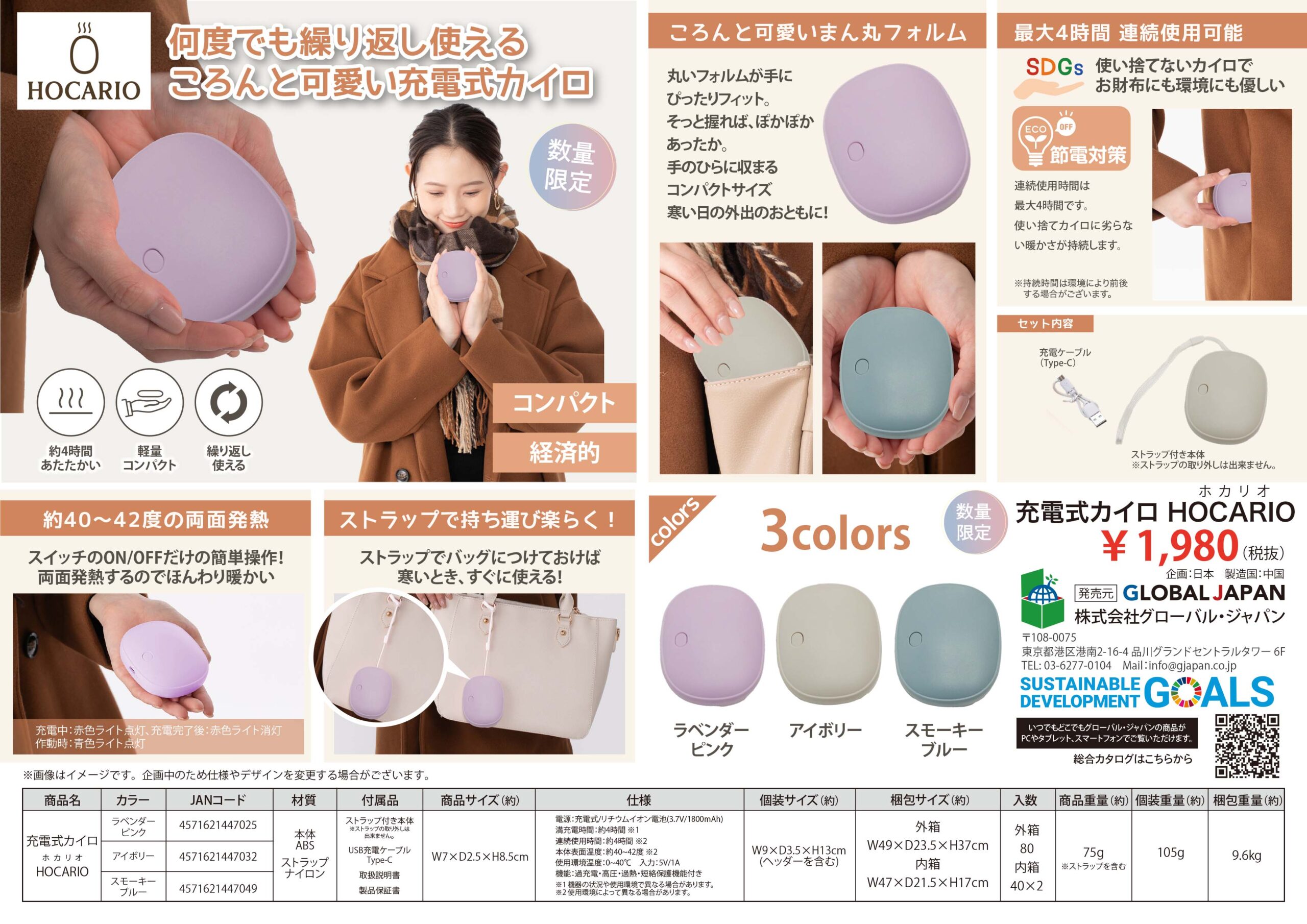 何度でも繰り返し使えるころんとかわいい充電式カイロ