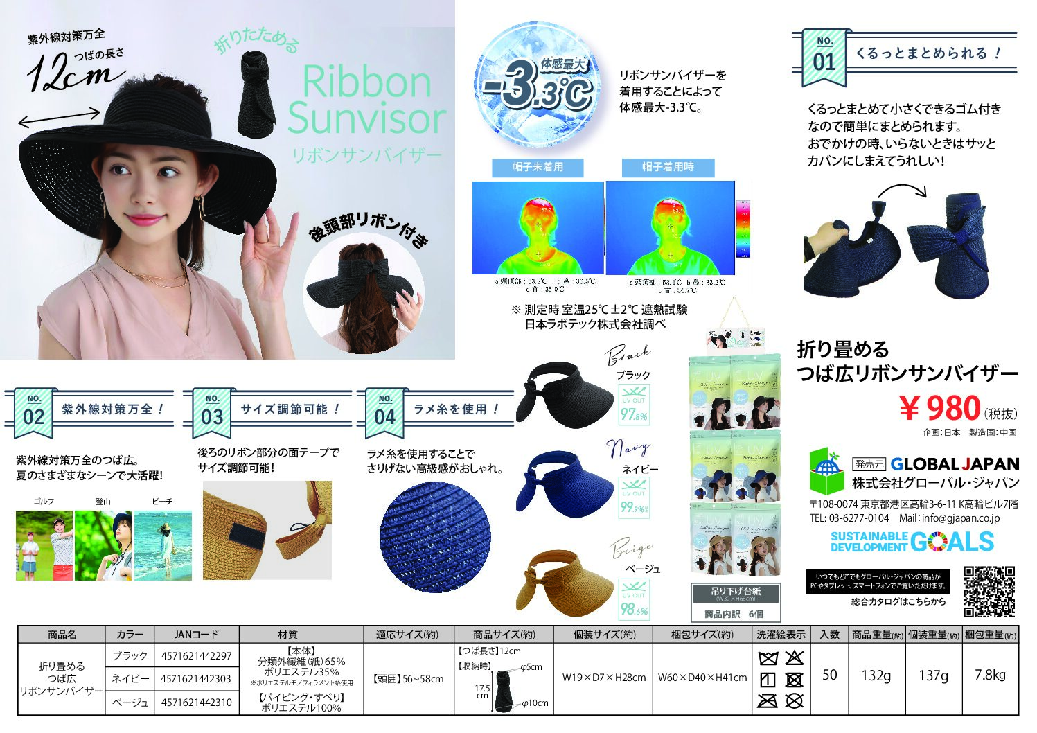 リボンサンバイザーを着用することによって体感最大-3.3℃