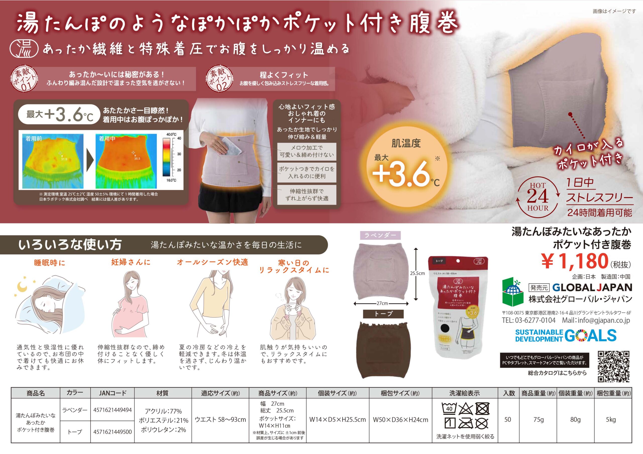 あったか繊維と特殊圧着でお腹をしっかり温める