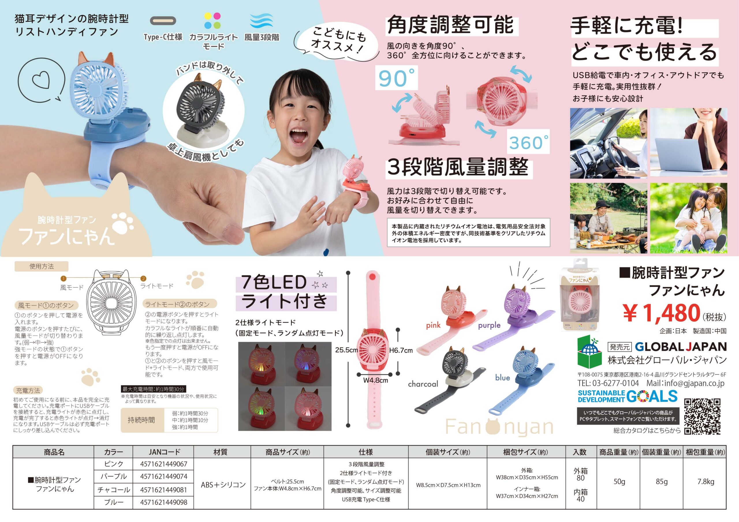 ファン本体:W4.8×6.7cm
