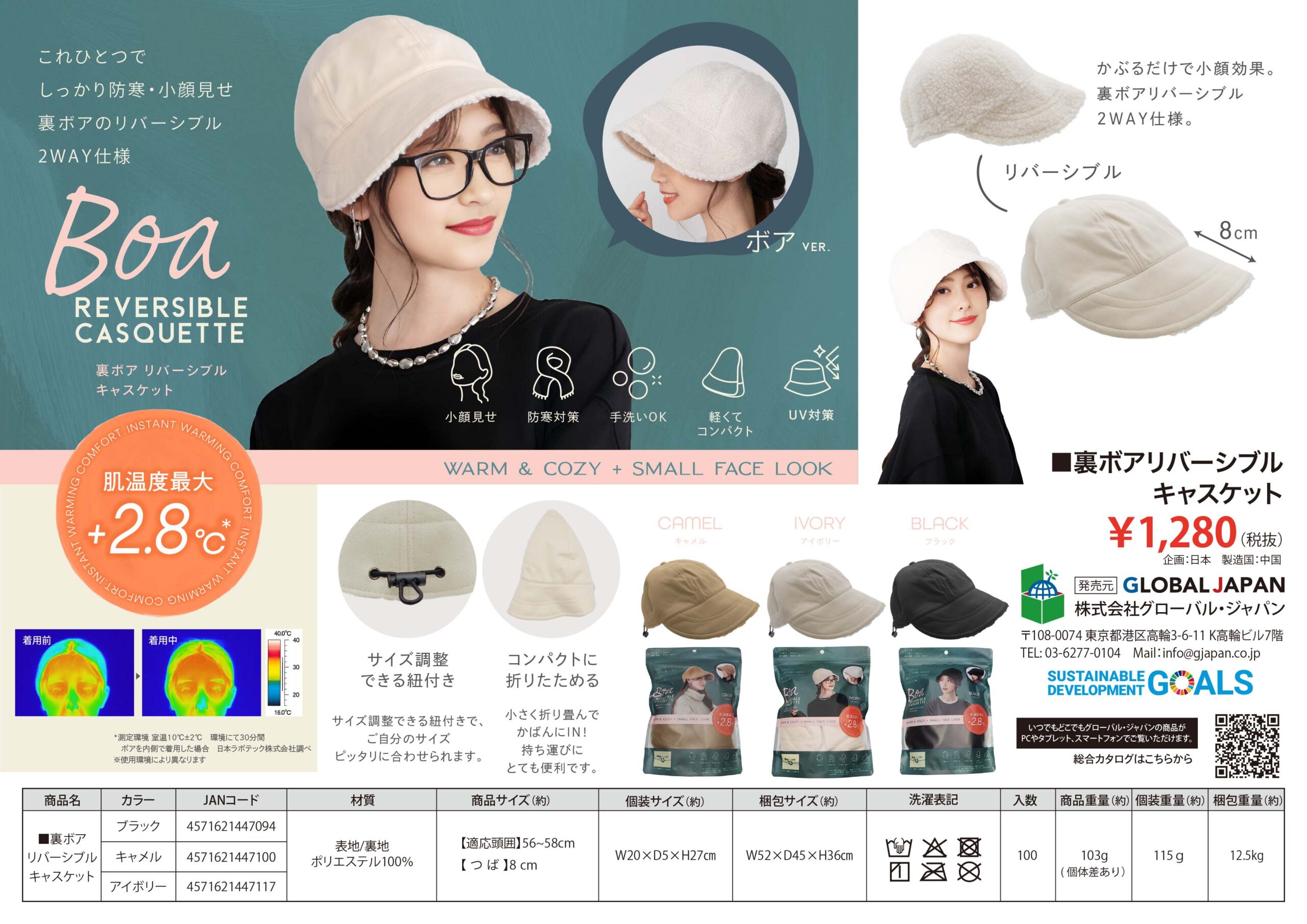 裏ボアリバージブルキャスケット