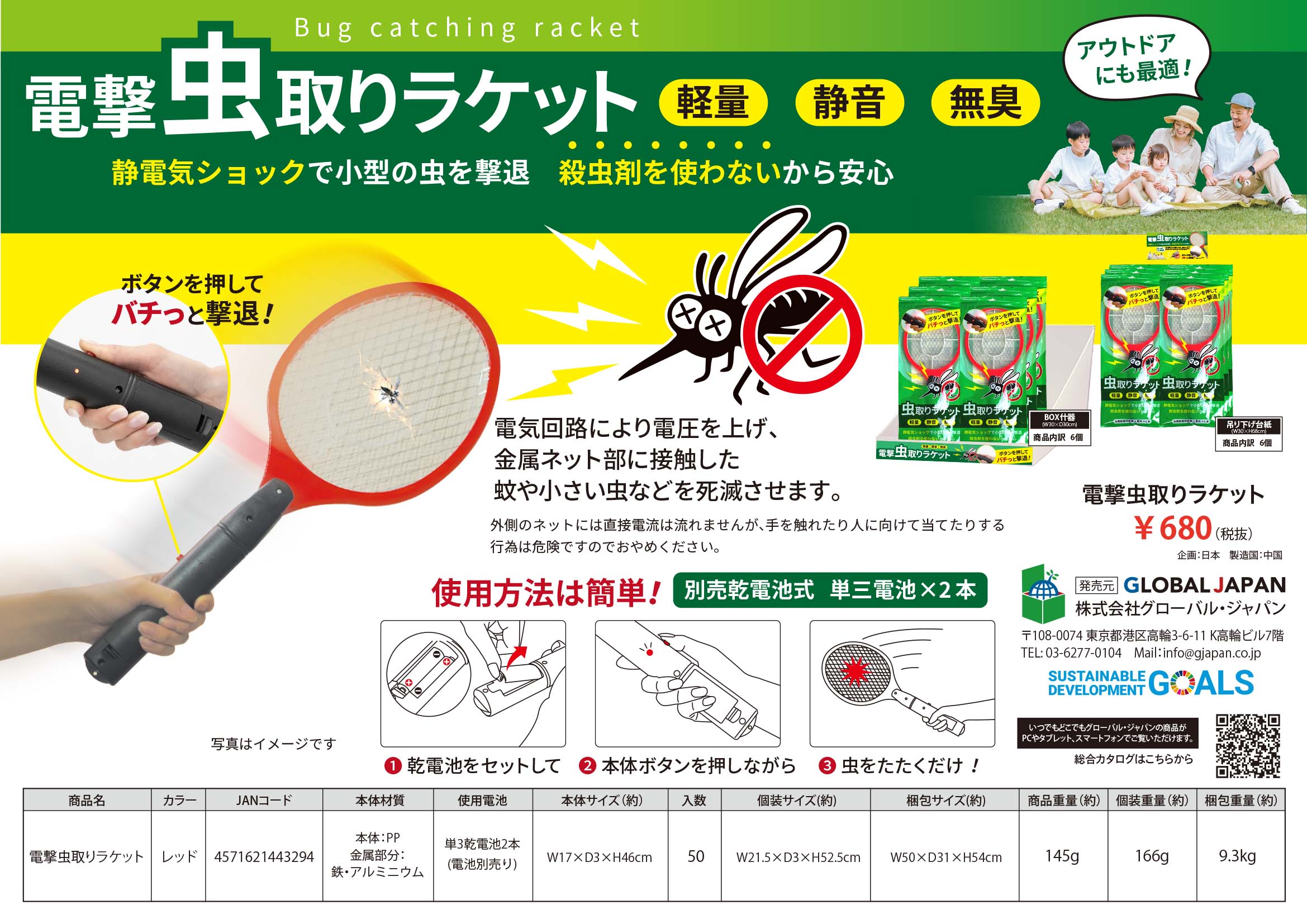 電気回路により電圧を上げ、金属ネット部に接触した蚊や小さい虫などを死滅させます。