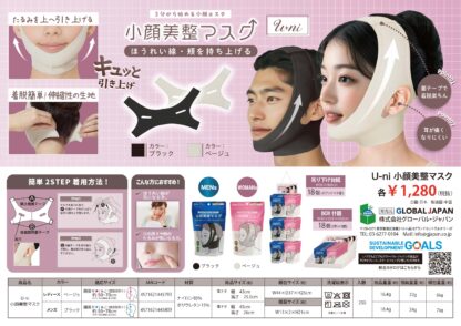 3分から始める小顔エステ ほうれい線・頬を持ち上げる たるみを上へ引き上げる 着脱簡単!伸縮性の生地 面テープで着脱楽ちん 耳が痛くなりにくい